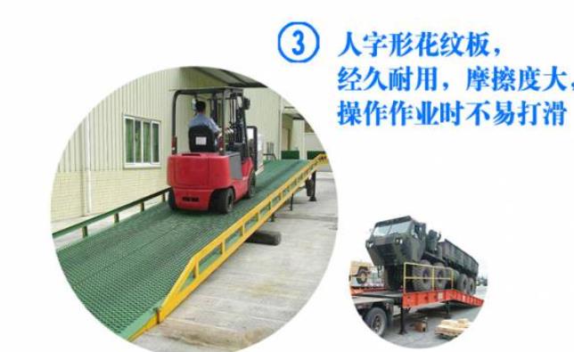 淄博登車橋-集裝箱登車橋-叉車搭橋-折疊式登車橋是與叉車配合使用的貨物裝卸輔助設(shè)備。有了它,叉車能直接從地面駛?cè)肫囓噹麅?nèi)部進(jìn)行批量裝缷作業(yè)。產(chǎn)品采用人工液壓動(dòng)力,不需接動(dòng)力電源,移動(dòng)式登車橋坡面采用特制的高強(qiáng)度齒形鋼格板,具有的防滑性能,使叉車有更好的爬坡能力和操控性。即使在雨雪天,仍能保障正常作業(yè)。隨機(jī)配置的剎車墊,能有效防止叉車在登車橋上行走作業(yè)時(shí),登車橋發(fā)生溜車及移動(dòng)以保障作業(yè)安全。只需單人操作,即可實(shí)物的安全快速裝卸。
